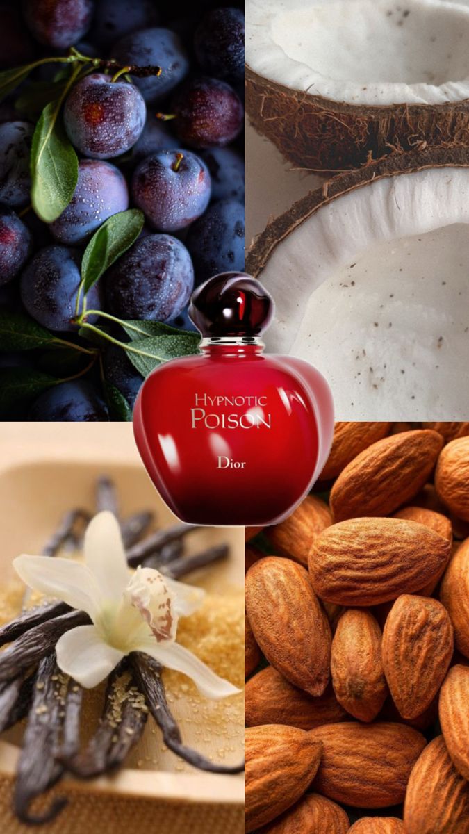 Hypnotic Poison by Dior Eau de Parfum is a floral-oriental fragrance with a warm and intriguing profile. The composition opens with bitter almond and coconut, followed by jasmine sambac, tuberose, and cinnamon at the heart. The base includes vanilla, sandalwood, and musk, providing depth and balance.